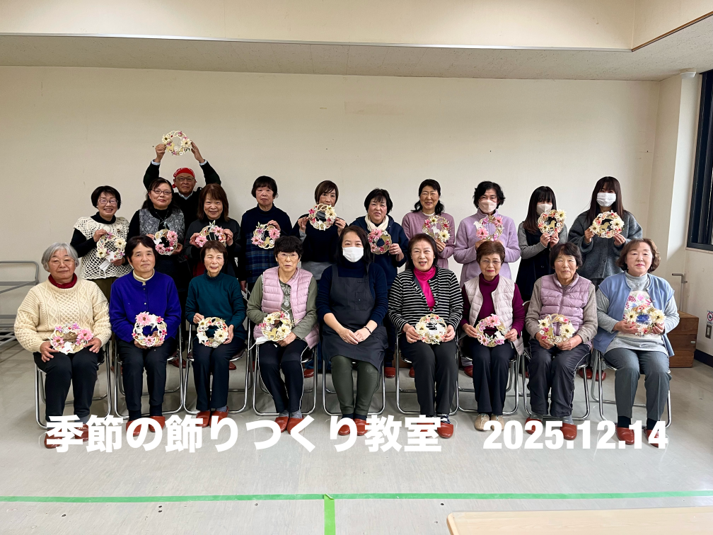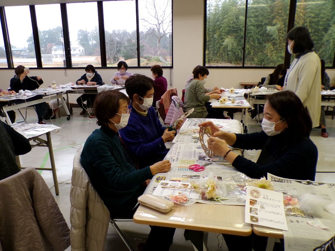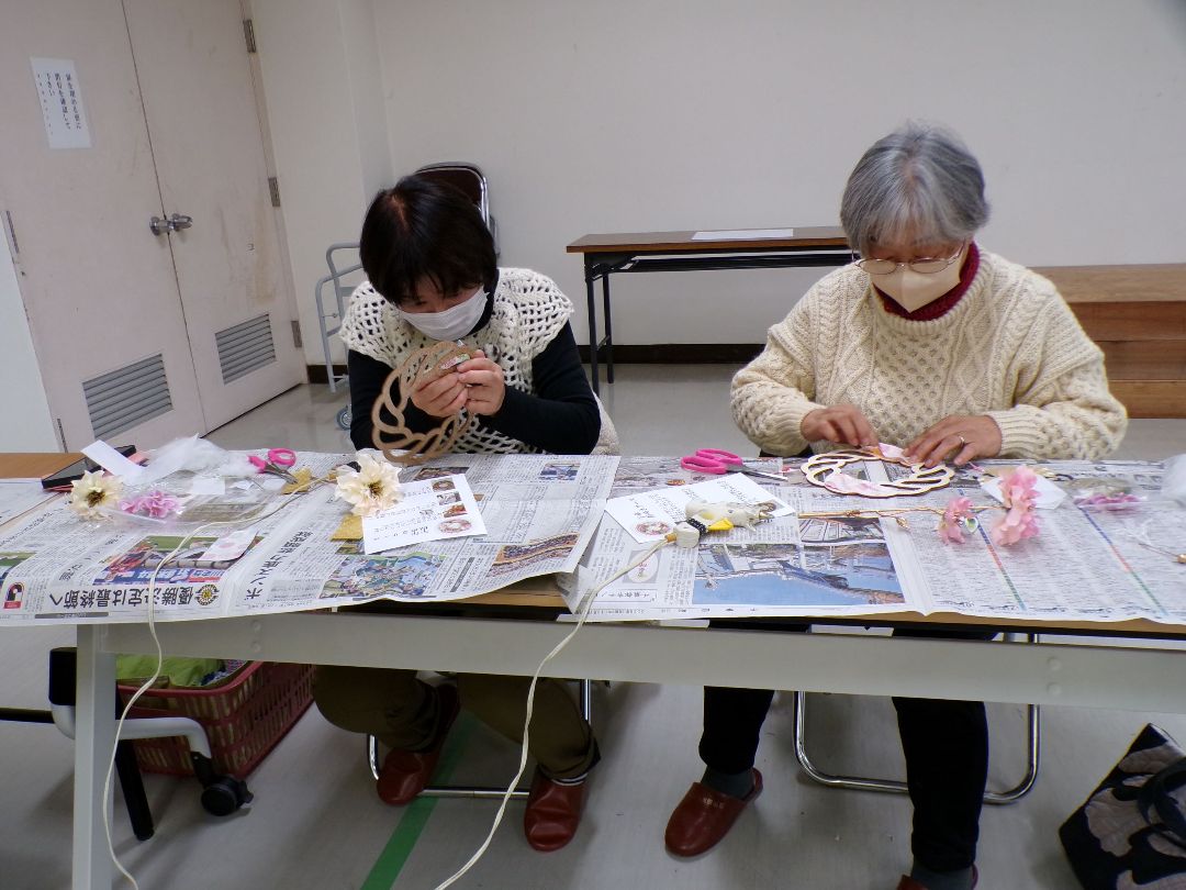 豊岡福祉センター主催の「季節の飾りつくり教室」を12月14日に実施しました。今の時季にふさわしい「煌めきリース」を参加者の皆さんが熱心に作り上げました。